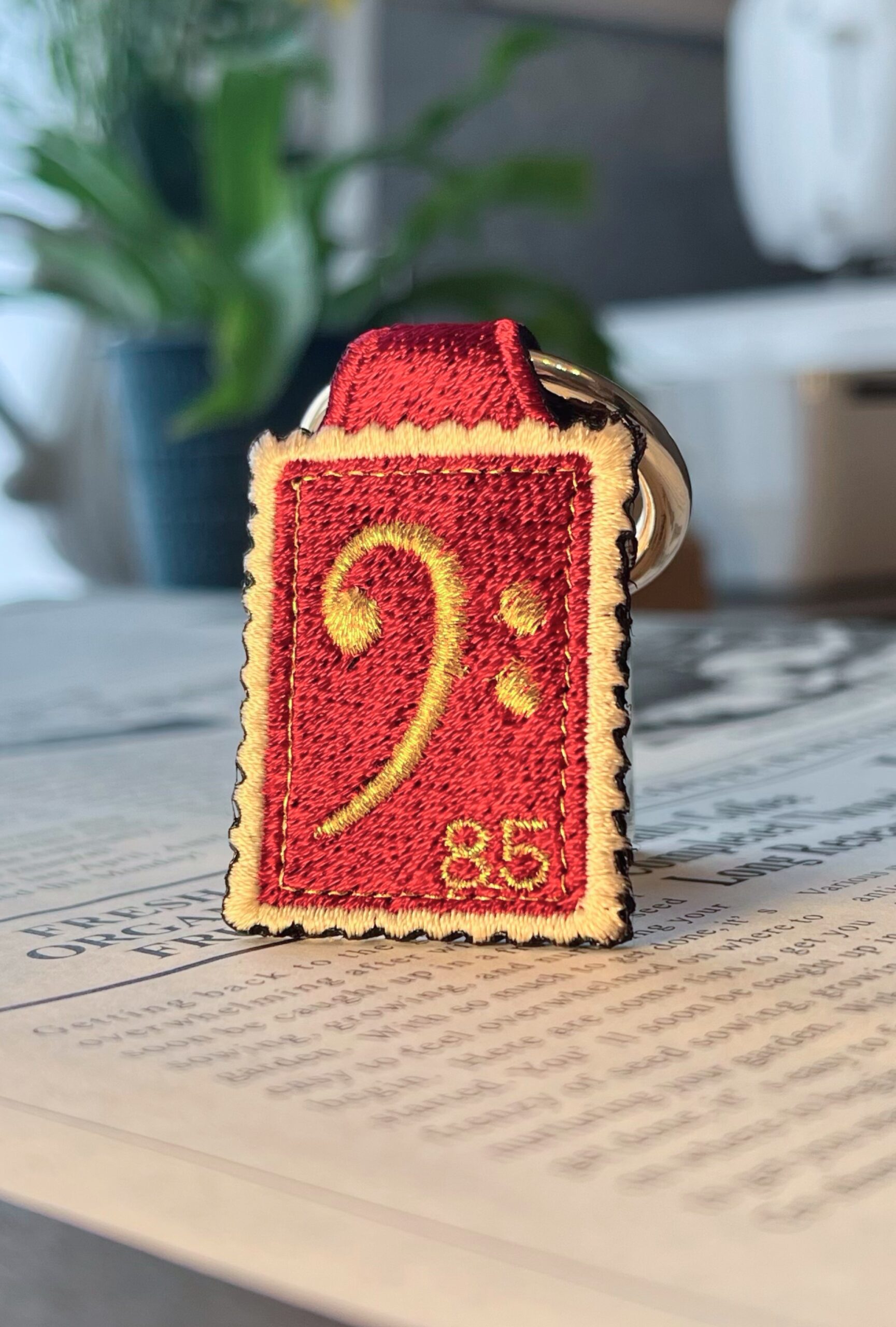 ヘ音記号の刺繍リング