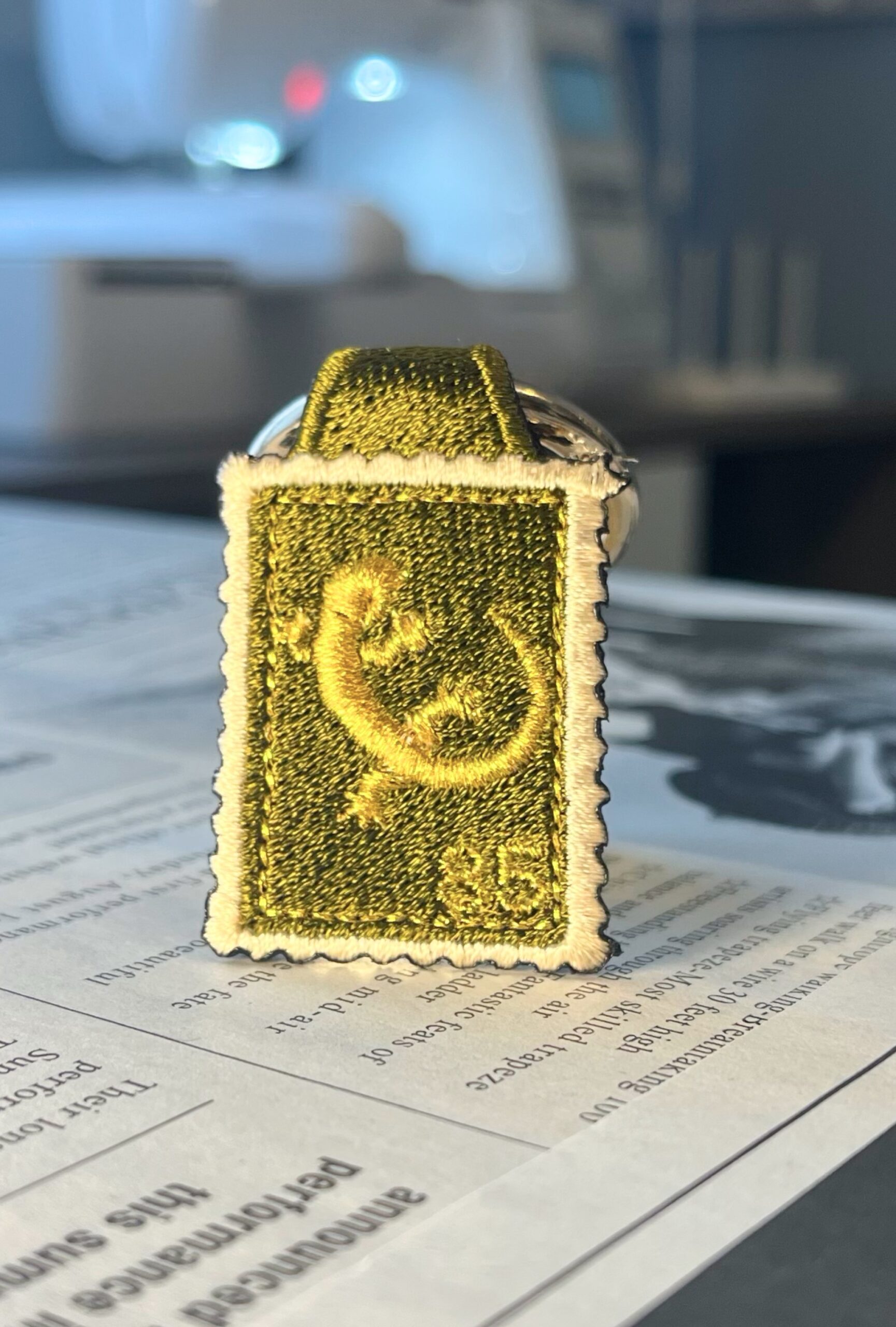 リザードの切手刺繍リング