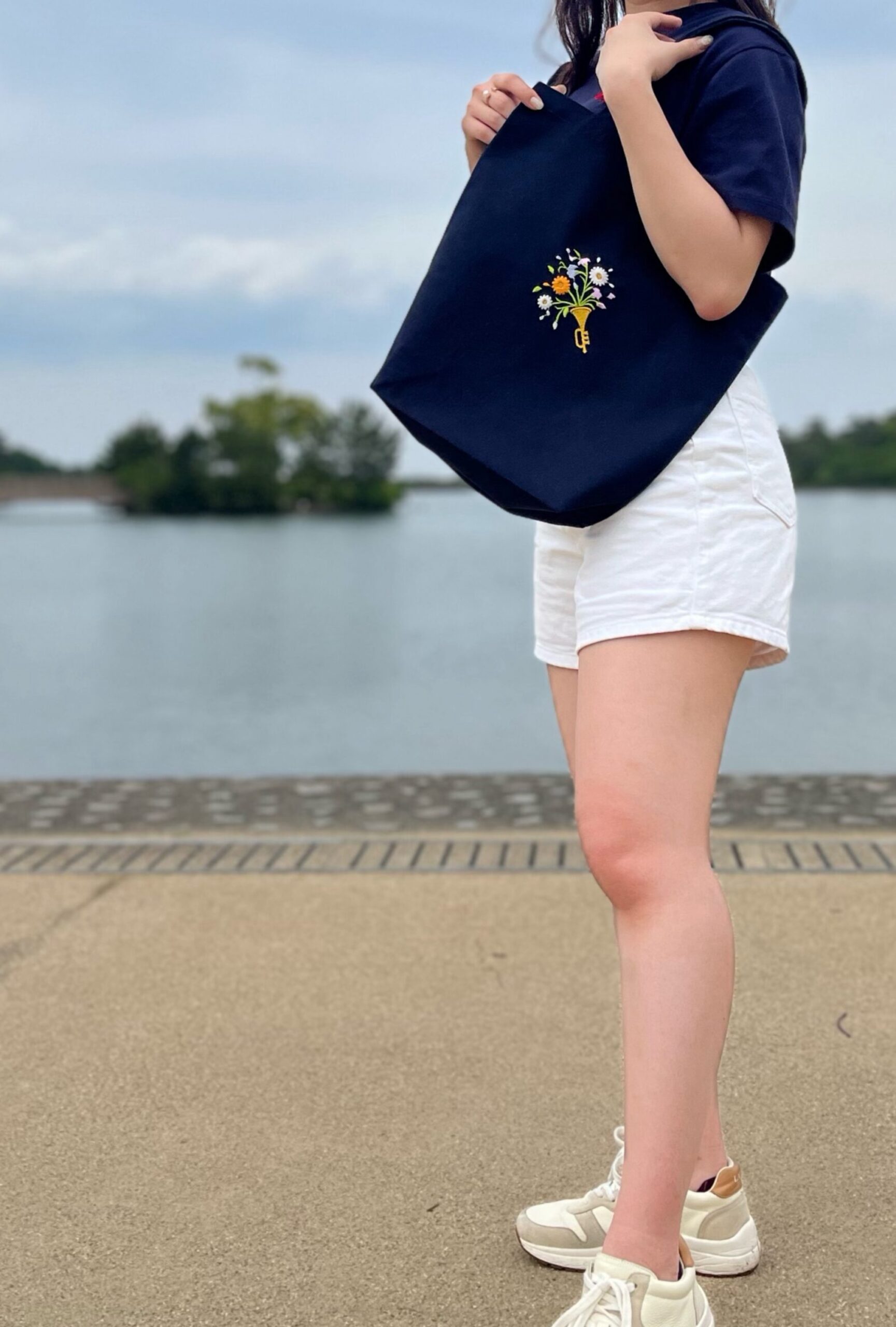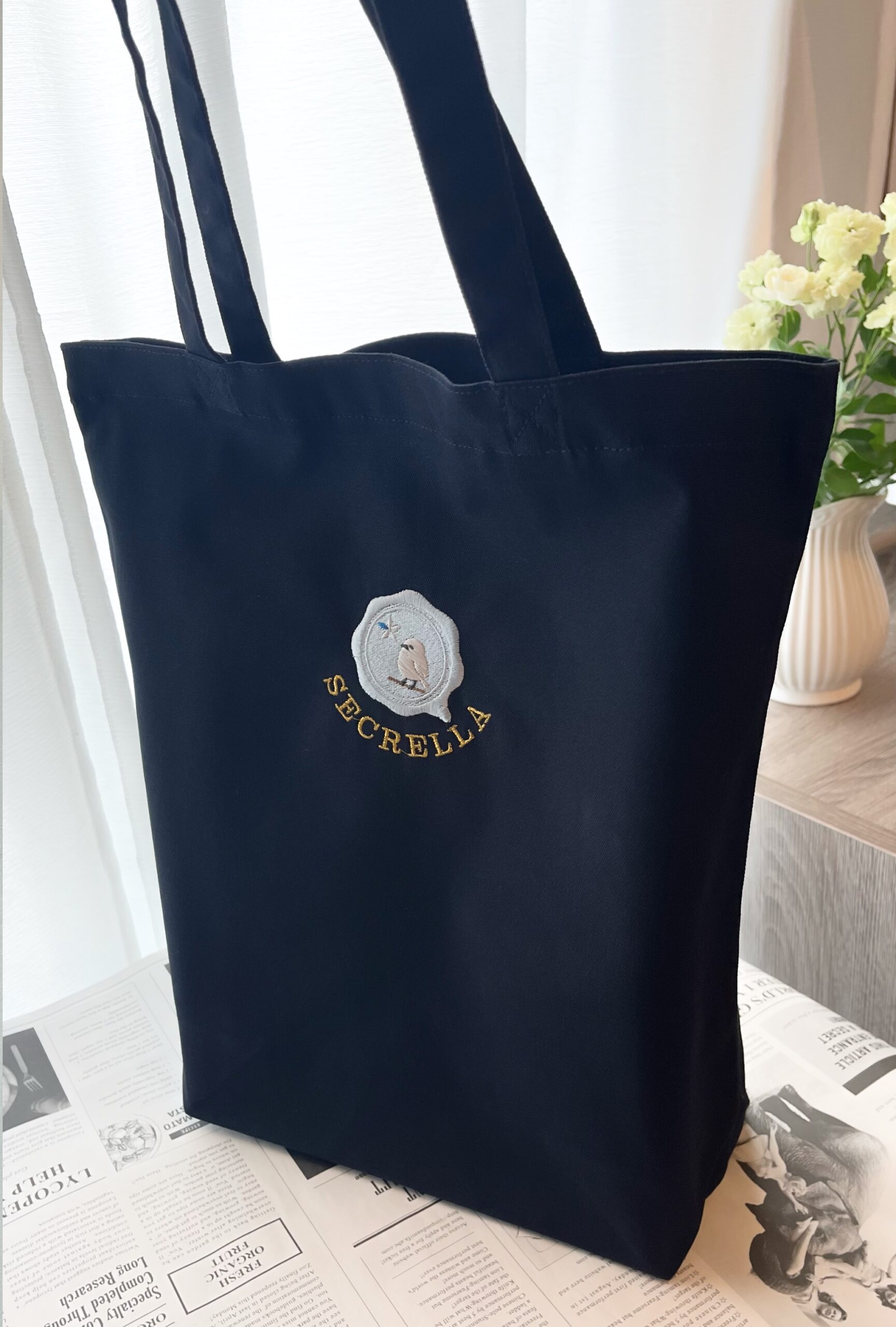 色:ネイビー 素材:綿 100% キャンバス, 横:24cm, 高さ:37cm, 幅:12cm, 持ち手長さ:47cm, 内容量:約10L
