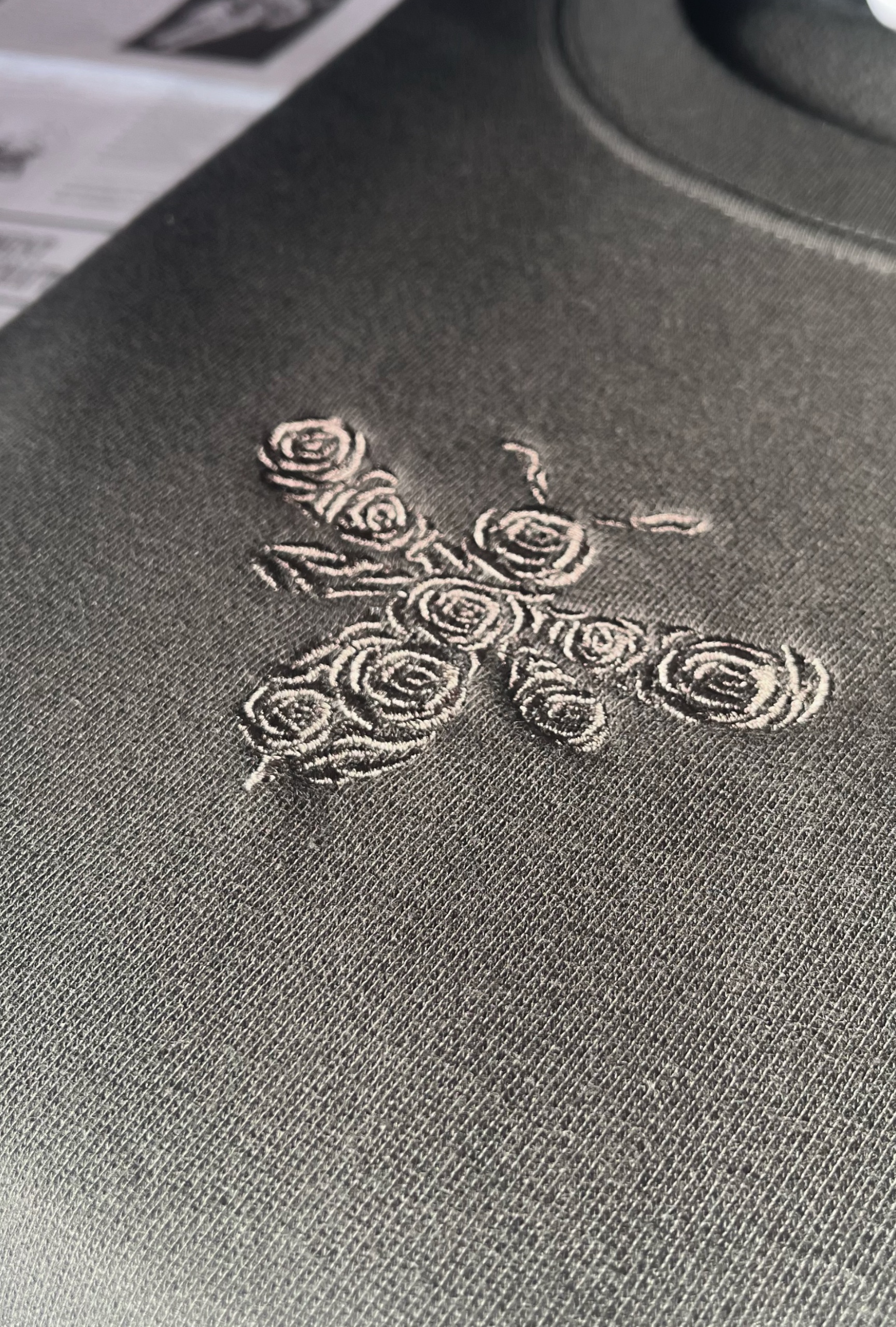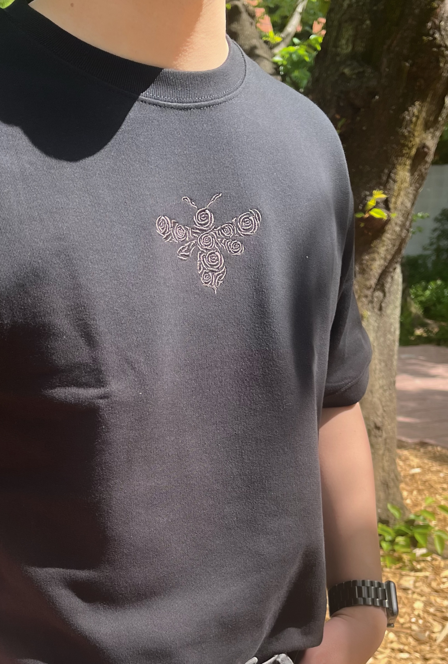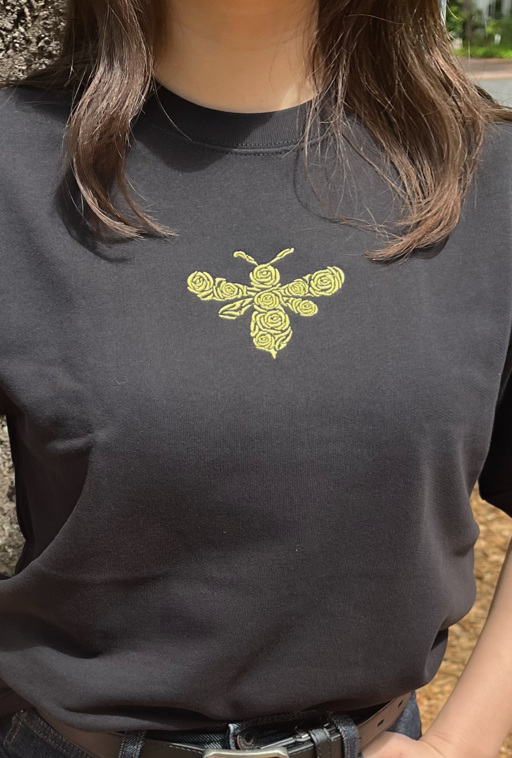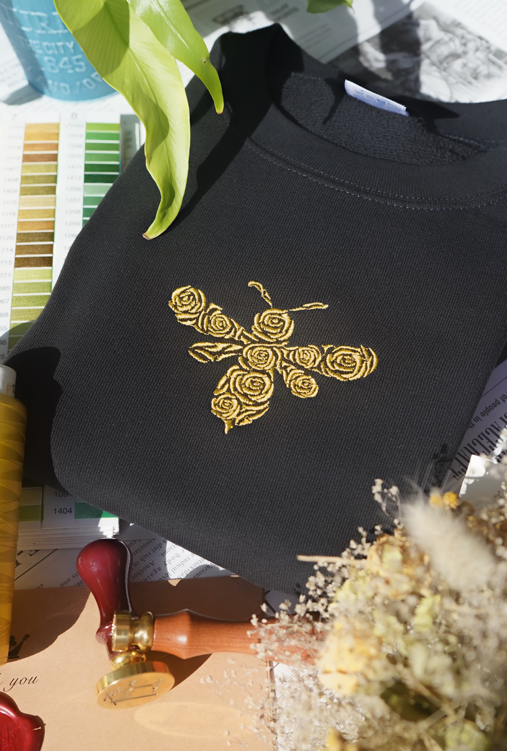 蜂を刺繍の薔薇でデザインしたスウェットです。