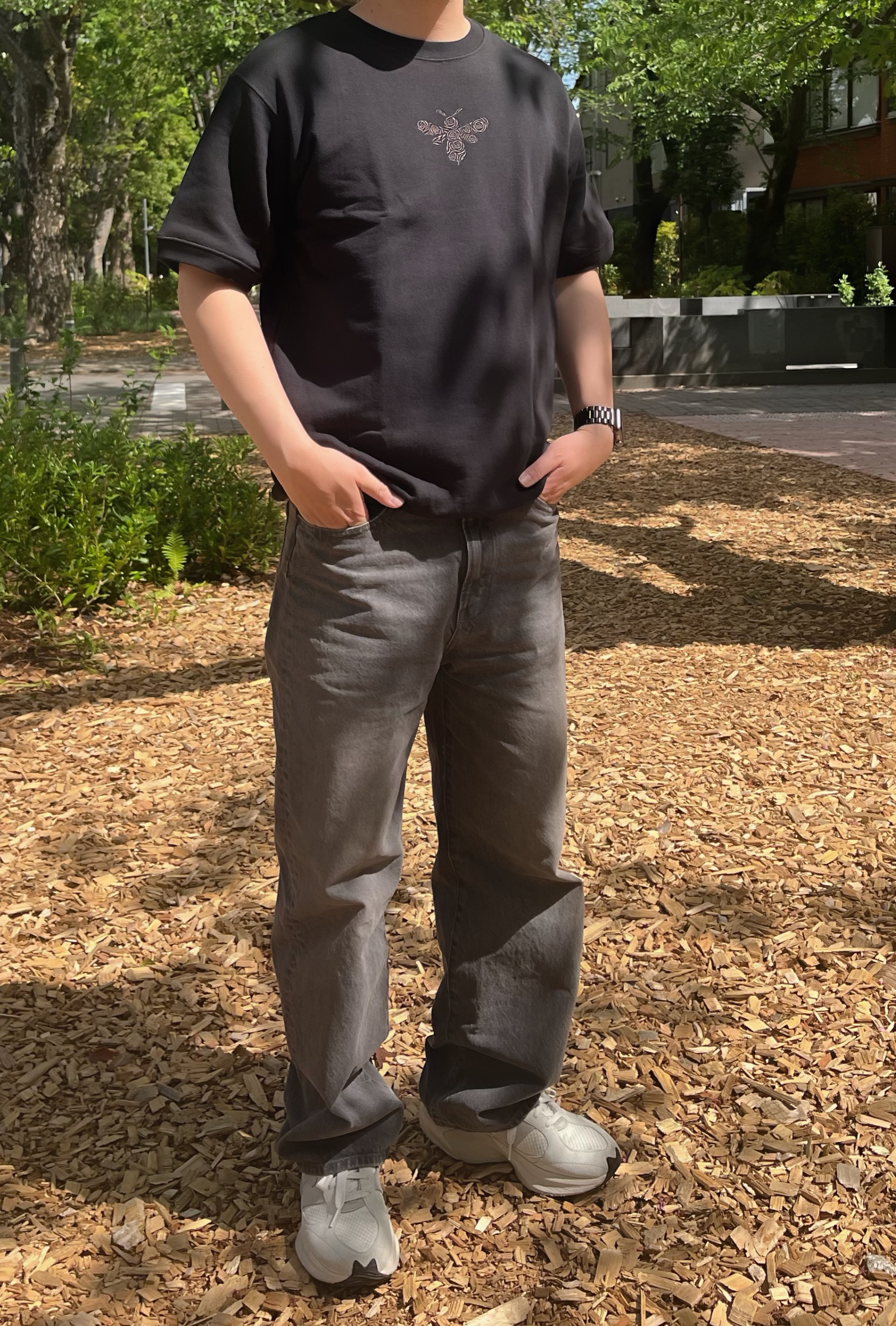 広めに仕上げた袖口と裾口のリブや、身体のラインを拾わないサイズ設計で、リラックス感のあるシルエット。