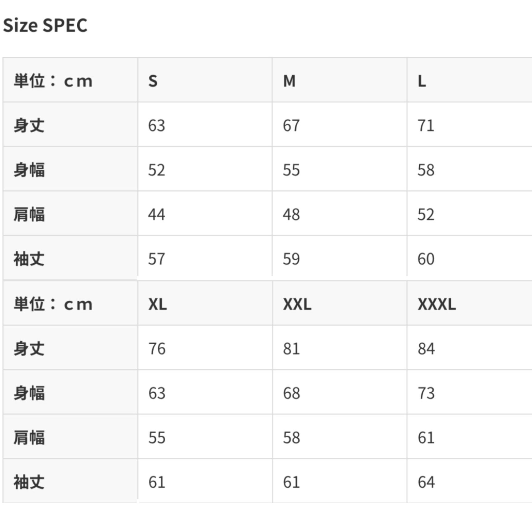 S・M・L・XL・XXL・XXXLの6サイズをご用意しています。