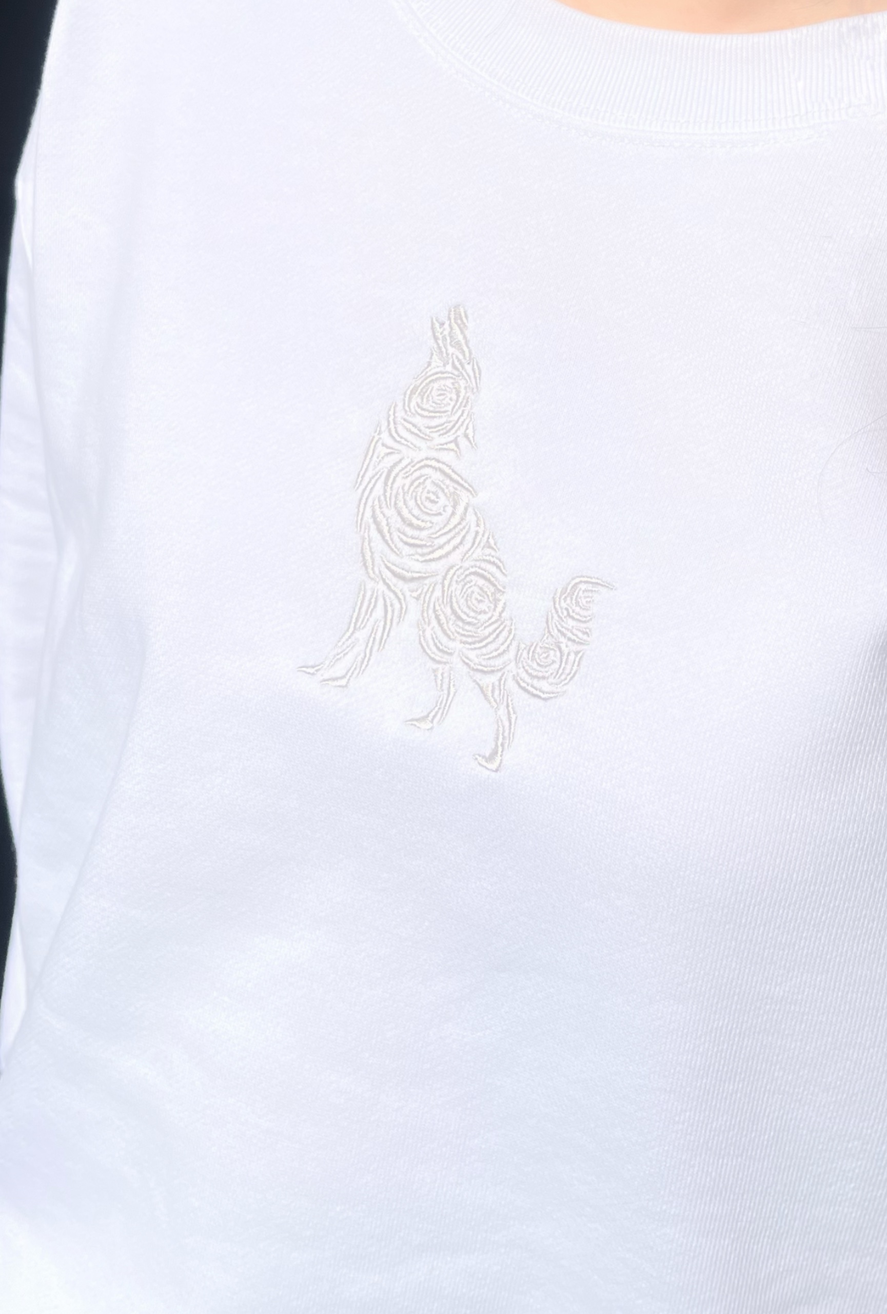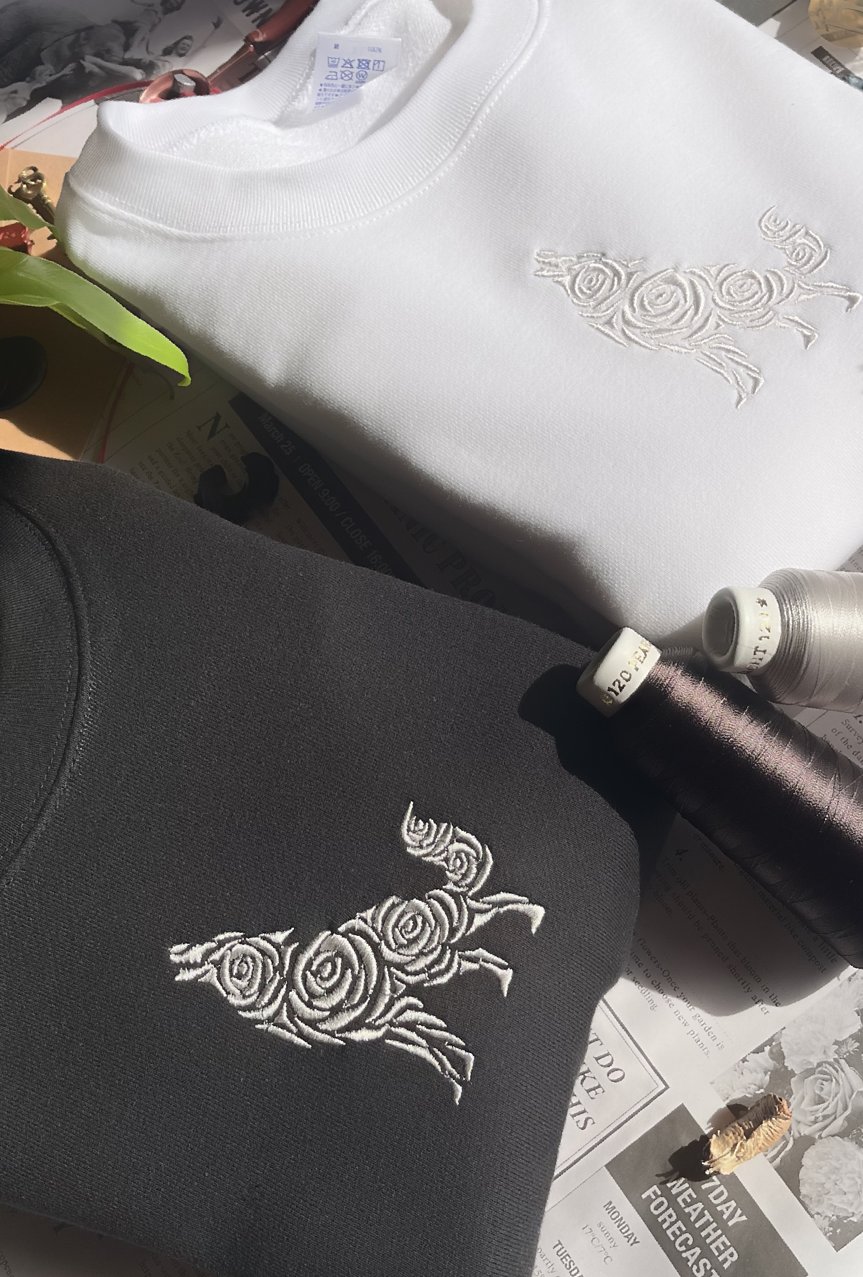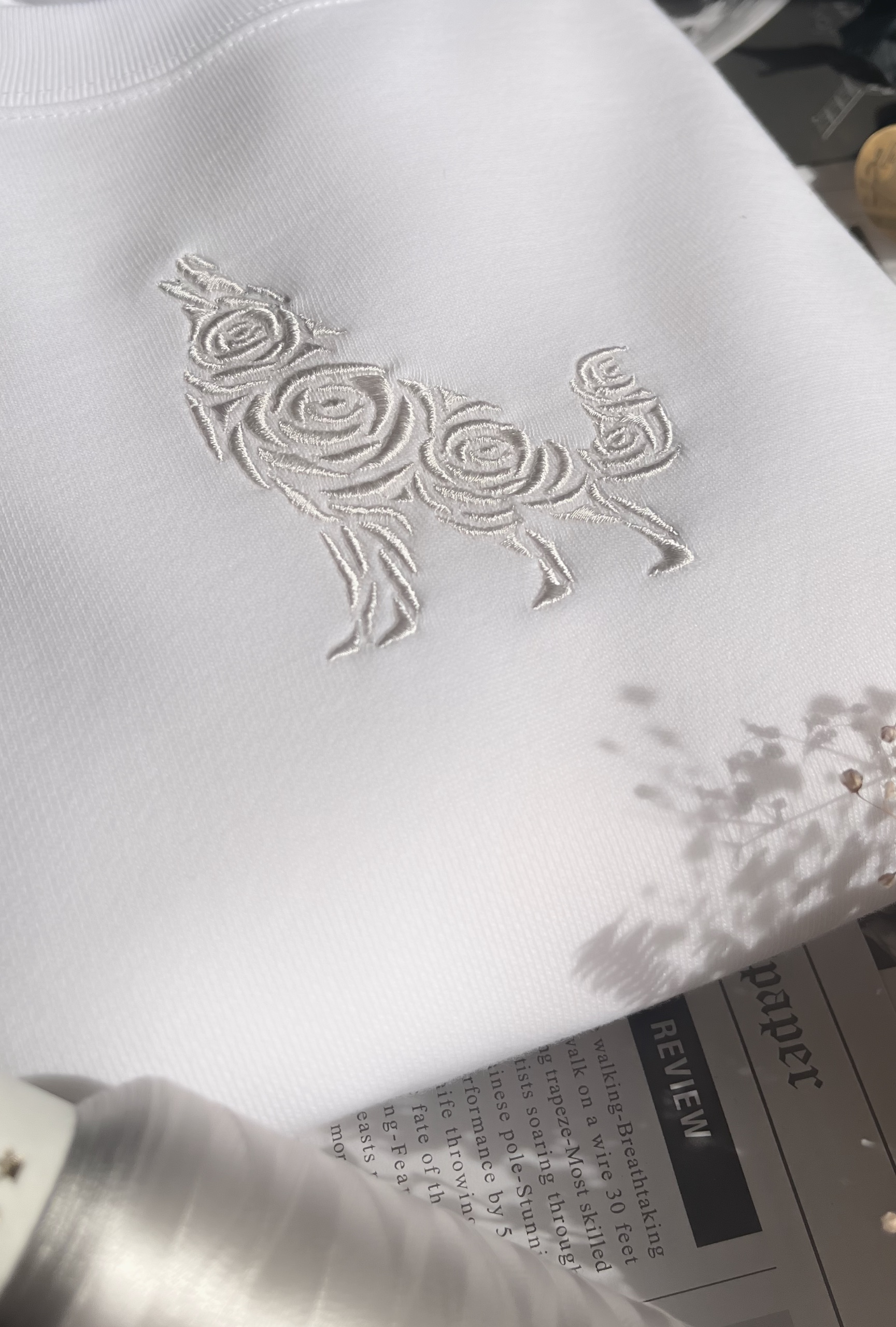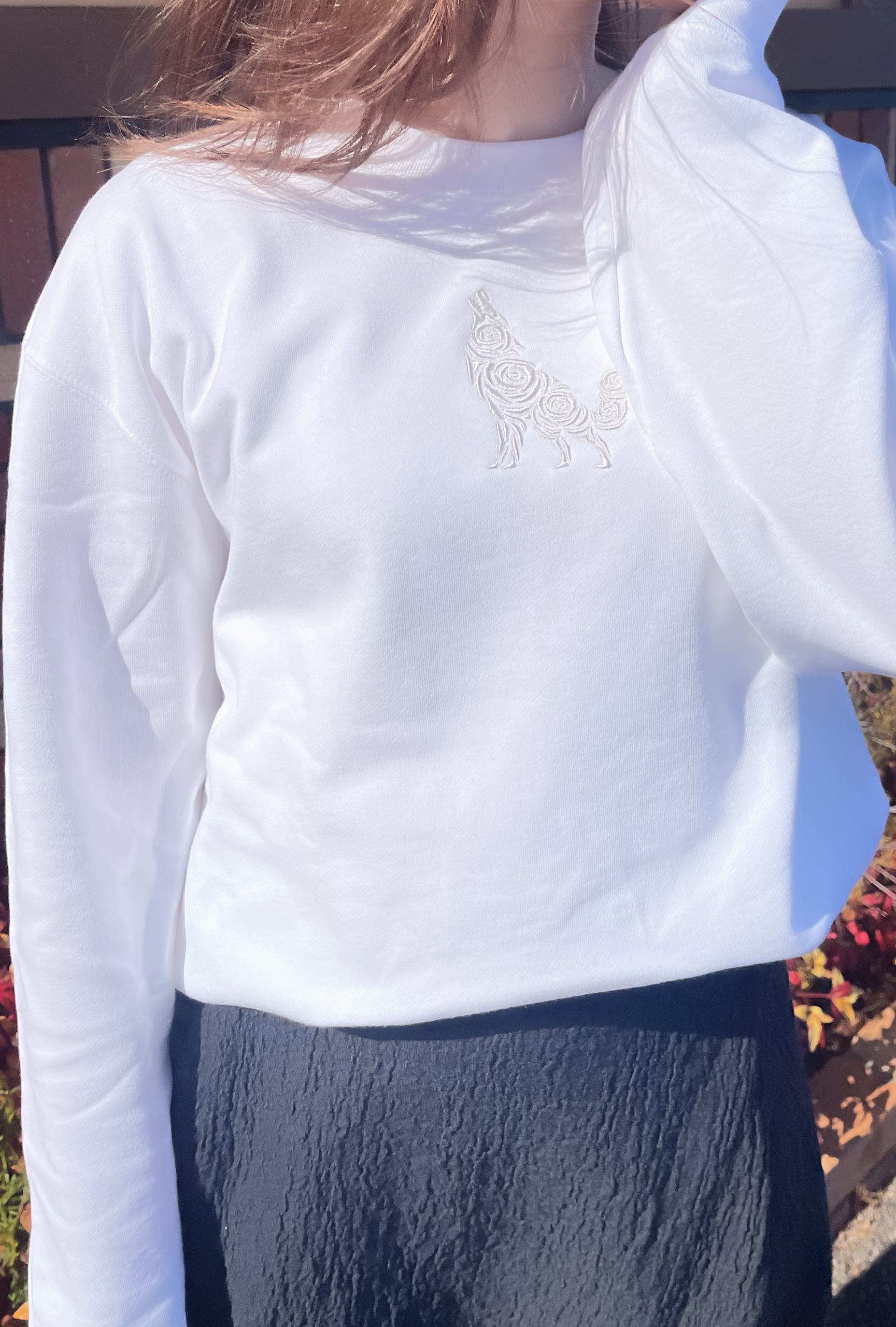 狼を薔薇の刺繍でデザインしたスウェット・刺繍リング・トートバッグです。