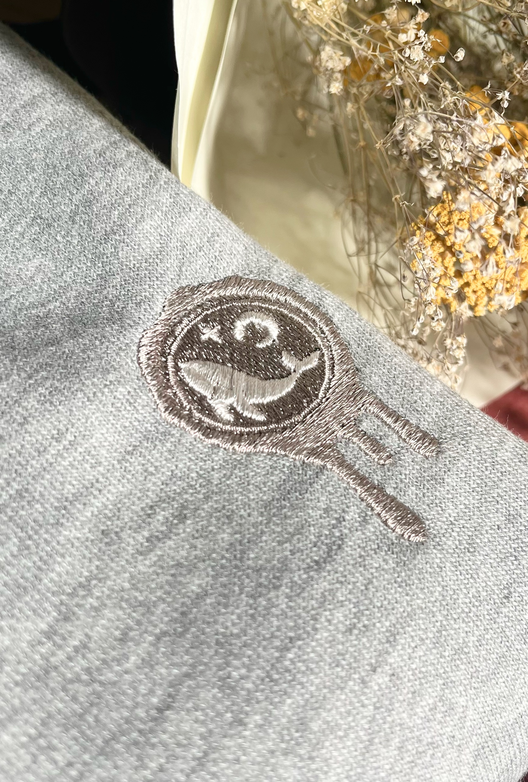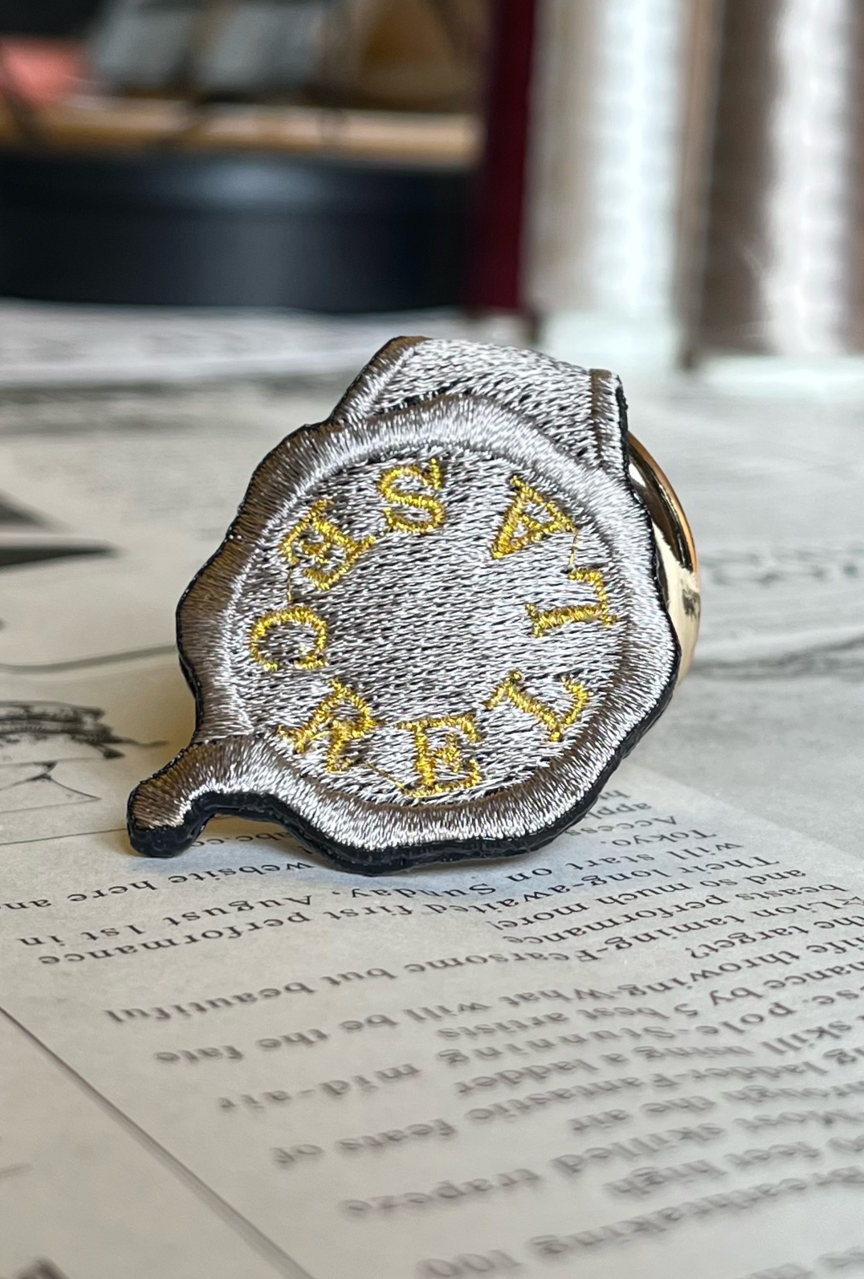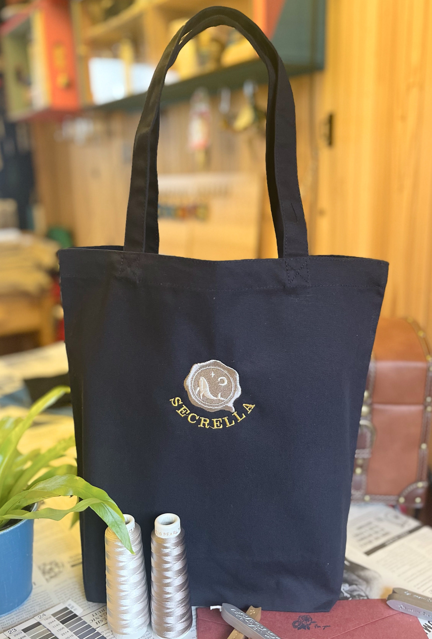 シーリングスタンプを刺繍でデザインしたスウェット・刺繍リング・トートバッグです。